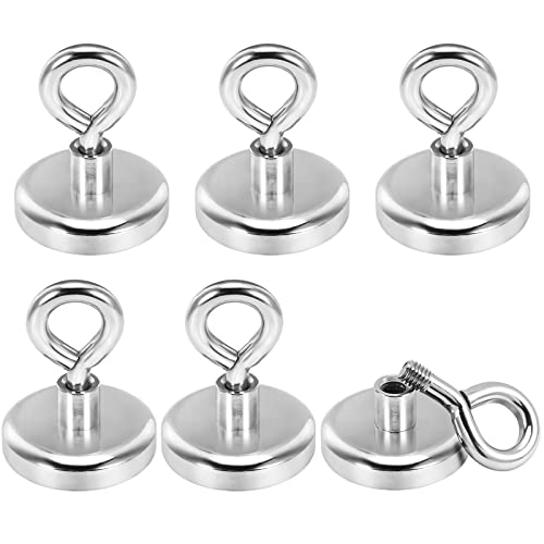 Aenienoe Starka magneter, starka, stora 55 kg, neodymmagnet, extra starka magneter, starkt grepp, 6 stycken magnetfiske med öljetter för magnetfiske i hemmet, verkstad, vatten, D 36 mm