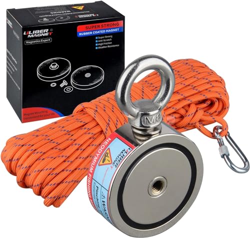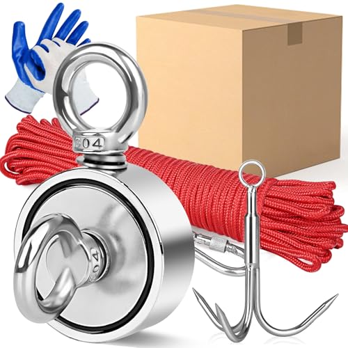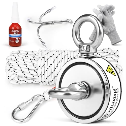 ULIBERMAGNET Superstarka dubbelsidiga fiskemagneter, kombinerat 500 kg N52 Neodymium magnetfiske kit med rep, klo, handskar, för magnetfiske och undervattensskattjakt