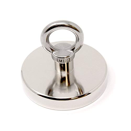 N42 Neodymmagnet med M12-öglebult för magnetfiske, återhämtning och skattjakt – 116 mm diameter x 20 mm – 400 kg drag – 1-pack