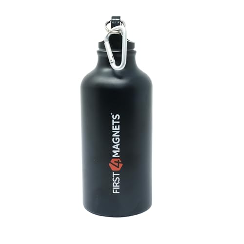 FIRST4MAGNETS® 400 ml vattenflaska – svart märkesaluminiumflaska, perfekt för magnetfiske och utomhusaktiviteter