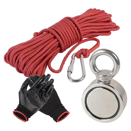 Dawumin magnetfiskset 480 kg, dubbelsidig neodym öljettmagnet magnetfiskeset, magnet för magnetfiske Ø 67 mm sökmagnet med 20 m rep, handskar och sökankare