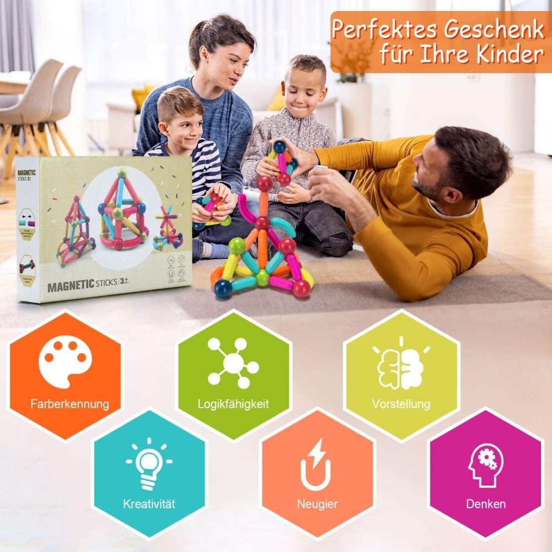 Magnetisk byggsats för barn – 48 stycken pedagogisk och kreativ, mobil eller fast konstruktion av hög kvalitet – magnetisk lek för barn, original och magnet för fantasi och lärande