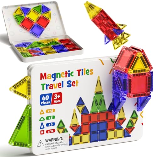 Magnetisk kakelkonstruktion set, reseleksak för barn, bärbar, resor, MINI, magnetiska kakelplattor, leksak, magnetisk byggsats, gåva för 3+ år, småbarn (40 st magnetiska tiles)