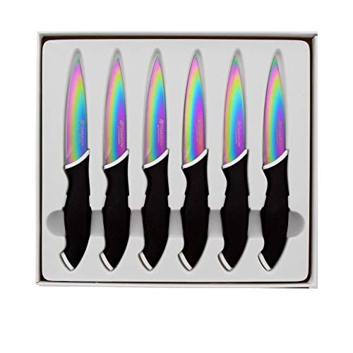 Pradel Excellence - Set med 6 bordsbiffknivar - blad i rostfritt stål 10 cm - ergonomiska ärmar Soft-touch-beläggning - diskmaskinssäker - magnetisk kartong i färg