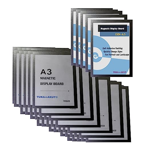 TUKA-i-AKUT 50 st magnetisk visningsram i A3 med självhäftande baksida, dokumenthylsor, magnetisk ram, självhäftande för POS, skylt, meddelanden, foton. Snabbinbyte, svart färg TKD8400-A3-50x