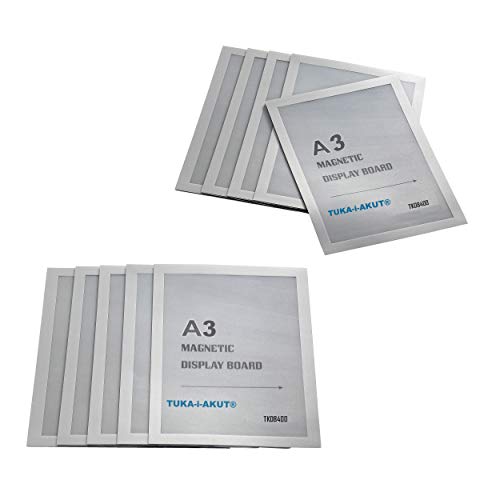 TUKA-i-AKUT 10 st magnetisk visningsram i A3 med självhäftande baksida, dokumenthylsor, magnetisk ram, självhäftande för POS, skylt, meddelanden, foton. Snabbinbyte, svart färg TKD8400-A3-10x