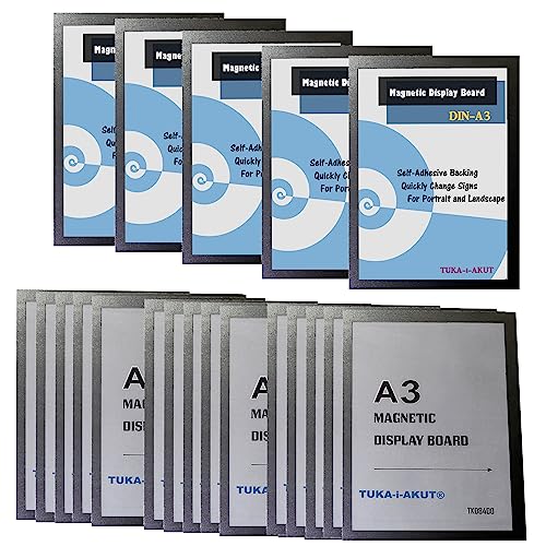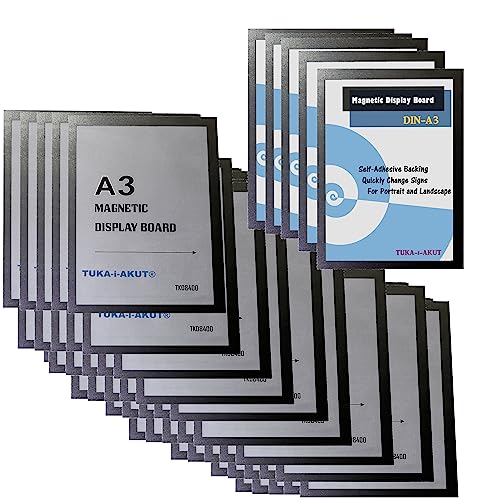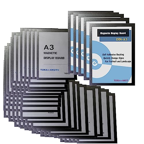 TUKA-i-AKUT 30 st magnetisk visningsram i A3 med självhäftande baksida, dokumenthylsor, magnetisk ram, självhäftande för POS, skylt, meddelanden, foton. Snabbinbyte, svart färg TKD8400-A3-30x