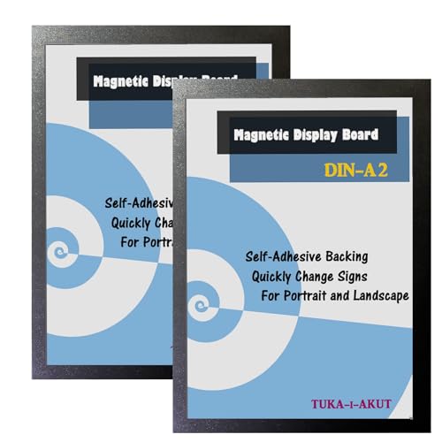 TUKA-i-AKUT 2 st magnetisk visningsram i A2 med självhäftande baksida, dokumenthylsor, magnetisk ram, självhäftande för POS, skylt, meddelanden, foton. Snabbinbyte, svart färg TKD8400-A2-2x
