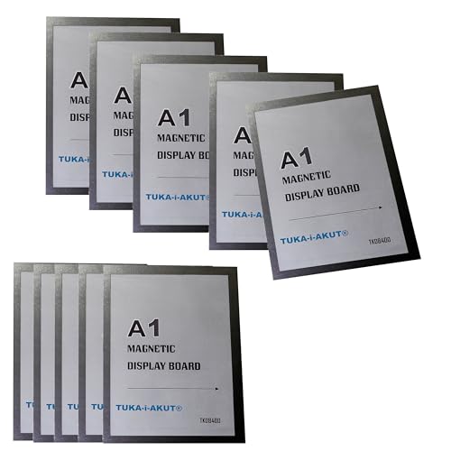 TUKA-i-AKUT 10 st magnetisk visningsram i A1 med självhäftande baksida, dokumenthylsor, magnetisk ram, självhäftande för POS, skylt, meddelanden, foton. Snabbinbyte, svart färg TKD8400-A1-10x