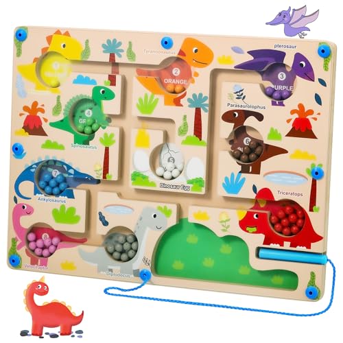 Zocipro Montessori leksaker för 2, 3, 4, 5 år, magnetisk färg och nummer, labyrint spel, dinosaurie Montessori färgmatchande lärande räkning, pusselbrädleksaker, gåva för förskolelärande pojkar