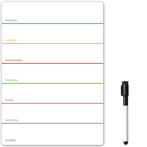 TMS Magnetisk veckoplanerare i A4-format för kylskåp, whiteboardplanerare med kylskåpsmagnet, memotavla för kök/kontorsmemon/måltidsplanering/påminnelser med torrtorkningspenna (färg, A4 + 1 penna)