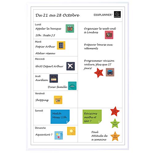 Exacompta - Ref 58150E - 1 magnetisk whiteboardtavla veckoplanerare - texter på franska - torkar av - levereras med alla nödvändiga tillbehör - format 90 x 59 cm - färg vit