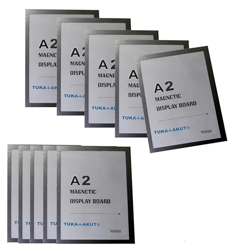 TUKA-i-AKUT 10 st magnetisk visningsram i A2 med självhäftande baksida, dokumenthylsor, magnetisk ram, självhäftande för POS, skylt, meddelanden, foton. Snabbinbyte, svart färg TKD8400-A2-10x
