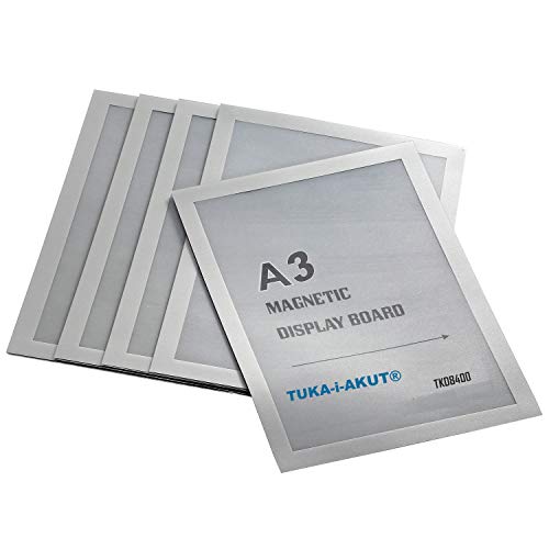 TUKA-i-AKUT 5 st. A3-informationsram självhäftande med magnetlås, infoficka infoficka bladhållare, snabbt byte av upphängning, vikbar magnetisk ram färg silver, TKD8400-A3-5x