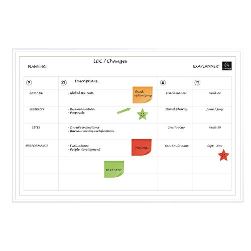 Exacompta - Ref 57170E - 1 magnetisk whiteboardtavla Teamorganisationsplanerare - torra avtorkning - återskrivbara magneter medföljer - storlek 90 x 59 cm - färg vit