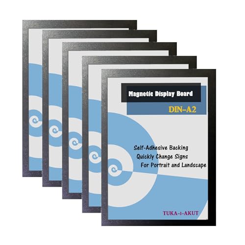 TUKA-i-AKUT 5 st magnetisk visningsram i A2 med självhäftande baksida, dokumenthylsor, magnetisk ram, självhäftande för POS, skylt, meddelanden, foton. Snabbinbyte, svart färg TKD8400-A2-5x