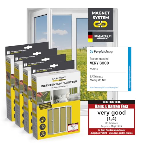 EASYmaxx Insect Protect insektsnät fönster med magnetisk fastsättning | myggnät till storlek | insektsskydd fönster upp till 150 x 180 cm | myggskydd flugnät magnet – enkel montering [4 stycken]
