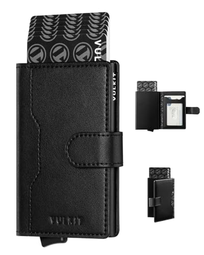 VULKIT Kortplånbok, Läder Pop Up Korthållare RFID Blockering Korthållare Plånbok med Fullängd Bankfack, ID Fönster & magnetisk stängning