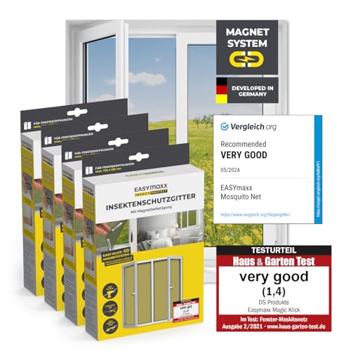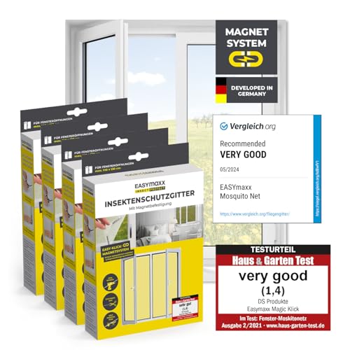 EASYmaxx Insect Protect insektsnät fönster med magnetisk fastsättning | myggnät till storlek | insektsskyddsfönster upp till 110 x 130 cm | myggskydds-magnet – enkel montering [4 stycken]