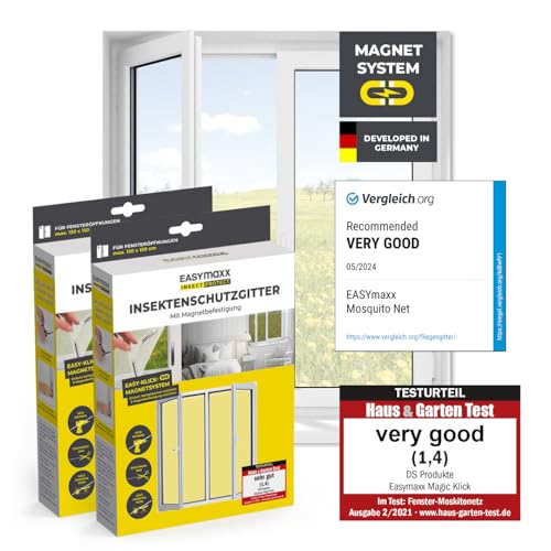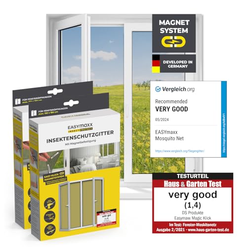 EASYmaxx Insect Protect insektsnät fönster med magnetisk fastsättning | myggnät till storlek | insektsskyddsfönster upp till 130 x 150 cm | myggskydds-magnet – enkel montering [2 stycken]