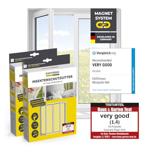 EASYmaxx Insect Protect insektsnät fönster med magnetisk fastsättning | myggnät till storlek | insektsskyddsfönster upp till 110 x 130 cm | myggskydds-magnet – enkel montering [2 stycken]