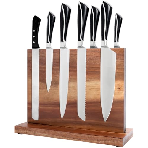 HOSHANHO Magnetiskt knivblock, dubbelsidig magnetisk knivhållare med starka förbättrade magneter, akacia trä magnetiska knivar stativ hylla förvaring för kök