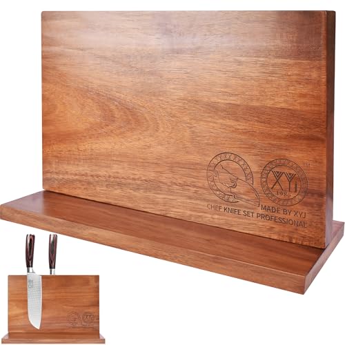 Gugxiom Magnetiskt knivblock med dubbla sidor, Acacia Wood magnetisk knivhållare, magnetisk knivblock, starka magneter, utan kniv, knivstativ för knivpresentation och förvaring