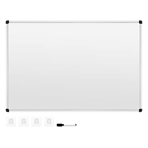 Navaris Magnetisk whiteboard - Väggtavla 90 x 60 cm med magnetisk dubbelsidig och extra fin 5 mm aluminiumram - 1x markör 2 x krok