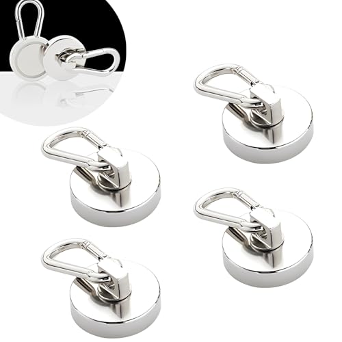 Fonyet Magnetkrok extra stark, 6 stycken magnet med karbinhakar, 360 graders vridbar magnetisk krok rund avtagbar magnetkrok för camping garage kök kontorskrok
