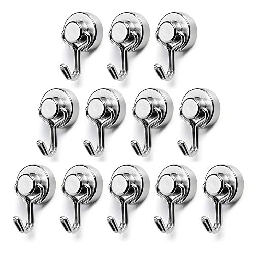 BTLIN Magnetisk Krok Mini, Stark Neodym Magnet med Liten Krok, Maximal Lastkapacitet 8 kg, Lämplig för Köks, Kylskåp, Garage, Kontor, 12 Stycken