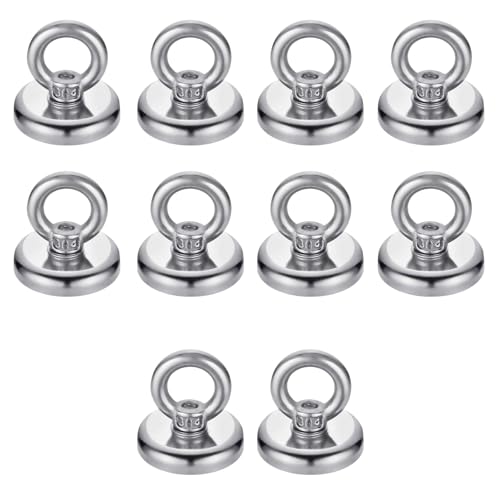 MIN CI 10 stycken magnetkrokar extra starka, 20 mm neodymmagneter krokar dragkraft 10 kg (22 pund) öljettmagnet magnet med krok magnetisk hållare rund magnet magnetisk krok för camping garage kök