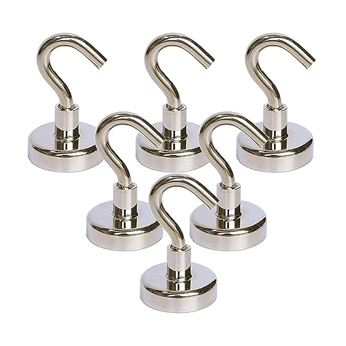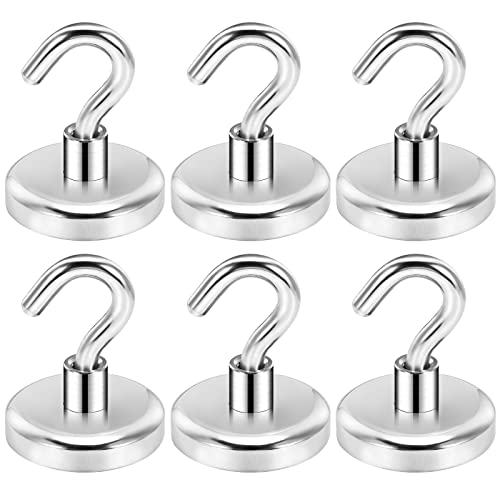 WTZWYFWJ Magnetkrok extra stark, 6 stycken neodym-magnetkrokar 25 mm, dragkraft stark karbinhake vridbar magnetisk krok, magnet med krok för kylskåp kök garage camping
