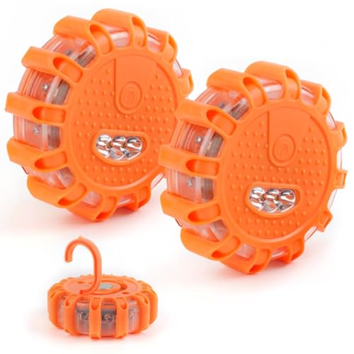 XhuangTech 6-pack LED-vägutsvängningar, nödskivfyr med 9 blixtlägen, magnetisk bas och krok förvaringsväska vägsida blinkande varningslampor för bil lastbil båtar (6)