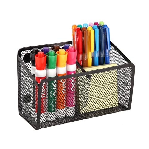 Magnetisk pennhållare – 3 generösa fack extra starka magneter nätmarkörhållare perfekt för whiteboard, kylskåp och skåptillbehör