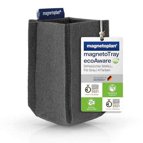 magnetoplan magnetoTray ecoAware Small, magnetisk pennhållare av filt, 6 x 10 x 6 cm, grå pennhållare tillverkad av återvunna PET-flaskor