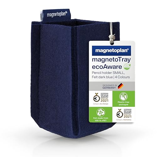 magnetoplan magnetoTray ecoAware Small, magnetisk pennhållare av filt, 6 x 10 x 6 cm, blå pennhållare tillverkad av återvunna PET-flaskor