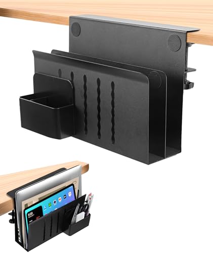 osseph 2-i-1 sidoförvaring, 30 x 20 cm klämma på sidan skrivbordsorganisatör med repfri dyna och magnetisk pennhållare, ingen borrning hängande under skrivbordet laptophållare passar platt skrivbord