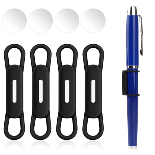 BSTKEY 4 st stark magnetisk pennhållare med justerbar fjäderögla, avtagbart rostfritt stål pennklämma, svart