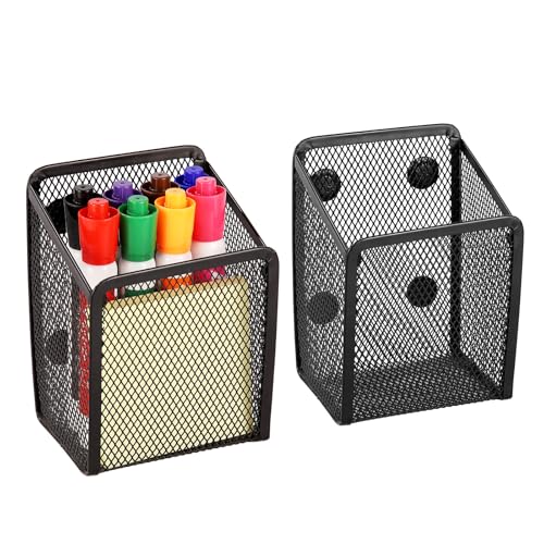 Magnetisk pennhållare – extra starka magneter nätmarkörhållare perfekt för whiteboard, kylskåp och skåp tillbehör (2 korgar, 1 pack svart)