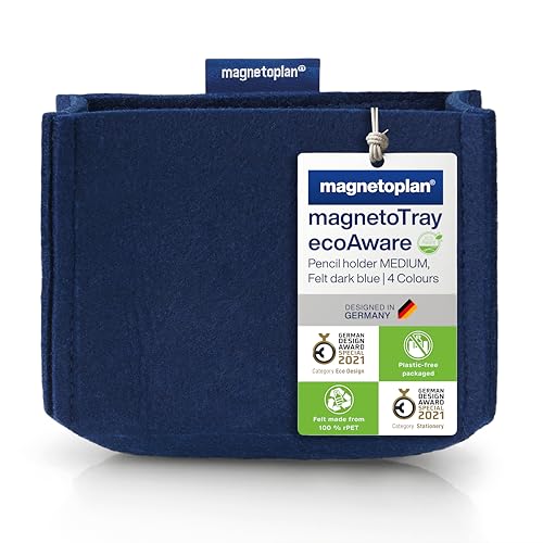 magnetoplan magnetoTray ecoAware Medium magnetisk pennhållare av filt, 13 x 10 x 6 cm, blå pennhållare tillverkad av återvunna PET-flaskor