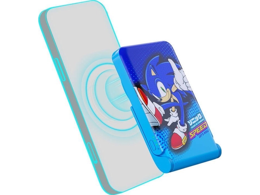 Otl Magnetisk Powerbank 5000 Mah, Usb-C 15W, Sonic The Hedgehog Med Stativ (Blå)