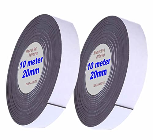 TUKA-i-AKUT 20 m x 2 cm magnettejp, självhäftande magnetband, magnetisk tejp, flexibla magnetremsor kan skäras till storlek, 2 x 10 meter längd, TKD9035-2 cm