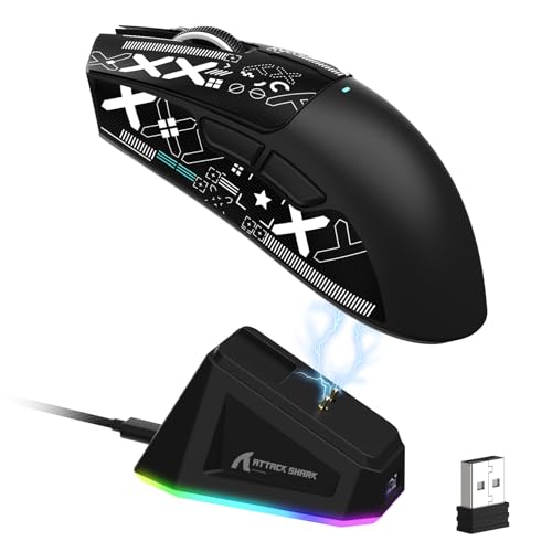 LexonElec x ATTACK SHARK X11 Trådlös Spelmus med RGB Magnetisk Laddningsdocka, PixArt PAW3311-Sensor, Ultralätt 59g Tri-Mode Gaming-Mus med Tejp, Trådbunden/2,4G/BT, 22K DPI för PC/Mac-Black&Tape