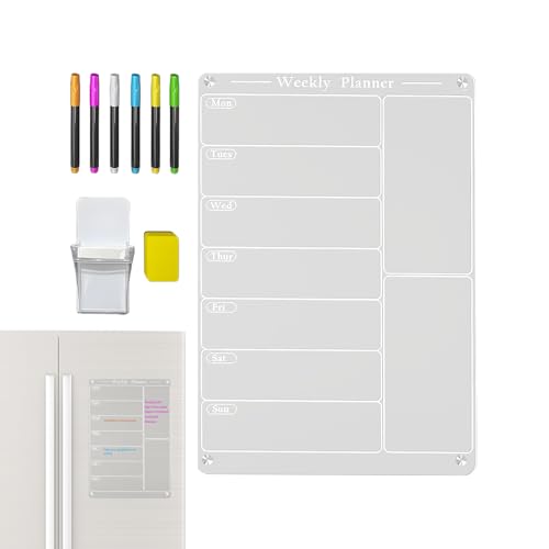 XTDMJ Magnetisk veckoplanerare akryl transparent kylskåp kalender veckoplanerare kylskåpskalender planerare med 6 färgade markörer menyplanerare magnetisk tavla