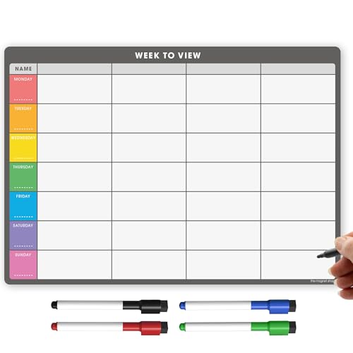 The Magnet Shop Magnetisk veckoplanerare och organiserare A4 | Helt anpassningsbar whiteboard för familj- eller företagsuppgifter och måltider, med 4 gratis magnetiska pennor (klassisk grå, A4)