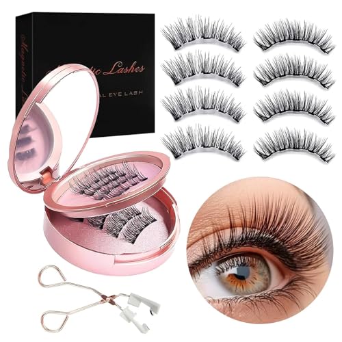 Hixava Magnetiska Fransar, Naturliga Magnetiska Fransar 4 Par åTeranväNdbara Magnetiska Fransar Magnetiska öGonfransar Fransförlängning Utan Lim Lämplig för Daglig, Dejting, Bal, Vardaglig Smink
