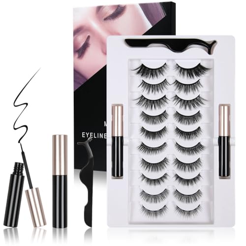 LOPHE Magnetiska ögonfransar, 10 par premium fuskmink-fransar med 2 magnetiska eyeliner, återanvändbara 3D-lockiga fransar, naturliga till dramatiska, komplett kit för kvinnor, jul, födelsedagspresent