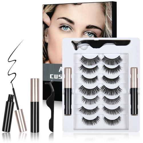 EONFAVE magnetiska ögonfransar, 7 stilar, magnetiska ögonfransar, 3D, vattentäta, limfria, återanvändbara, lätta att bära