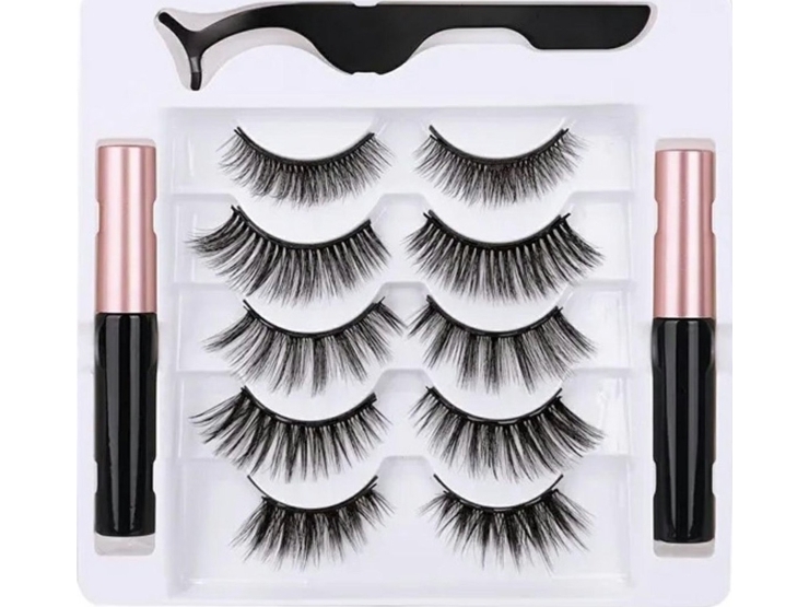 Magnetiska ögonfransar Naturlig magnetisk flytande eyeliner + Tre par av fem magnetögonfransar magnetisk eyeliner
