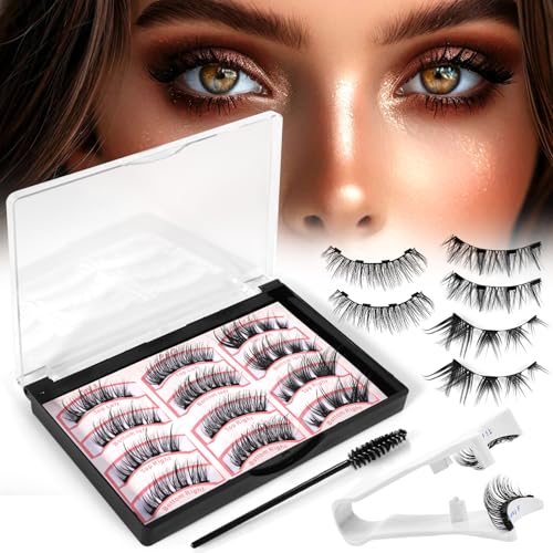 AOUVT 10 par 3D magnetiska ögonfransar, naturliga Lösögonfransar Set, återanvändbara magnetiska ögonfransar, vattentäta och inget lim krävs, magnetiska ögonfransar kit med eyeliner